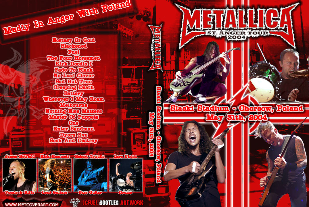 Outside The Stadium Footage Ecstasy of Gold Blackened Fuel Four Horsemen Kirk Doodle Fade To Black Frantic (Missing) King Nothing (Missing) No Leaf Clover St.Anger (Missing) Sad But True Creeping Death Battery Wherever I May Roam Melbourne Nothing Else Matters Master of Puppets One Enter Sandman Dyers Eve Seek & Destroy