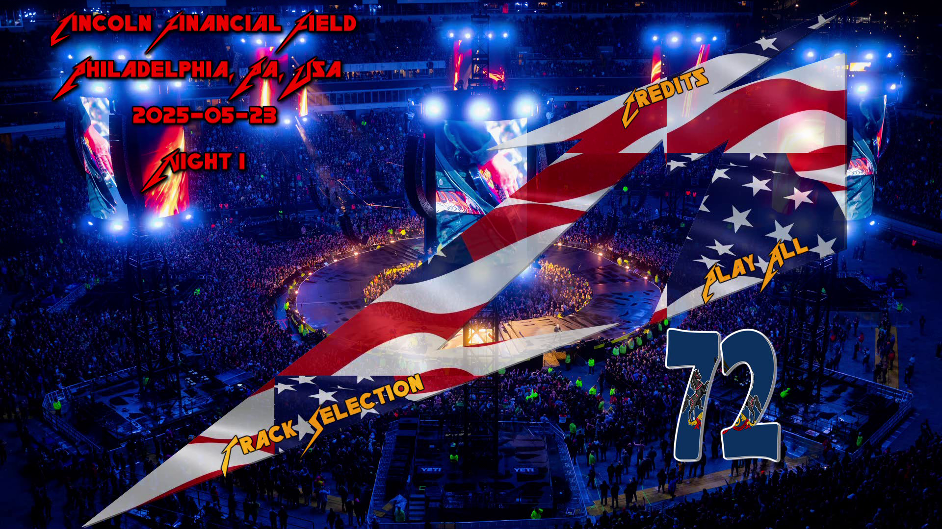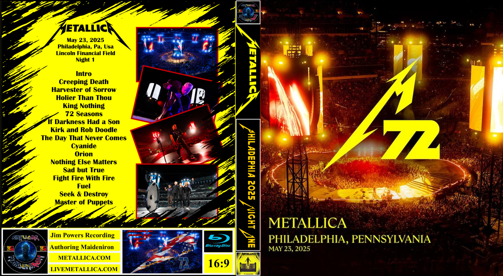 Intro Creeping Death Harvester of Sorrow Holier Than Thou King Nothing 72 Seasons If Darkness Had a Son Kirk and Rob Doodle The Day That Never Comes Cyanide Orion Nothing Else Matters Sad but True Fight Fire With Fire Fuel Seek & Destroy Master of Puppets