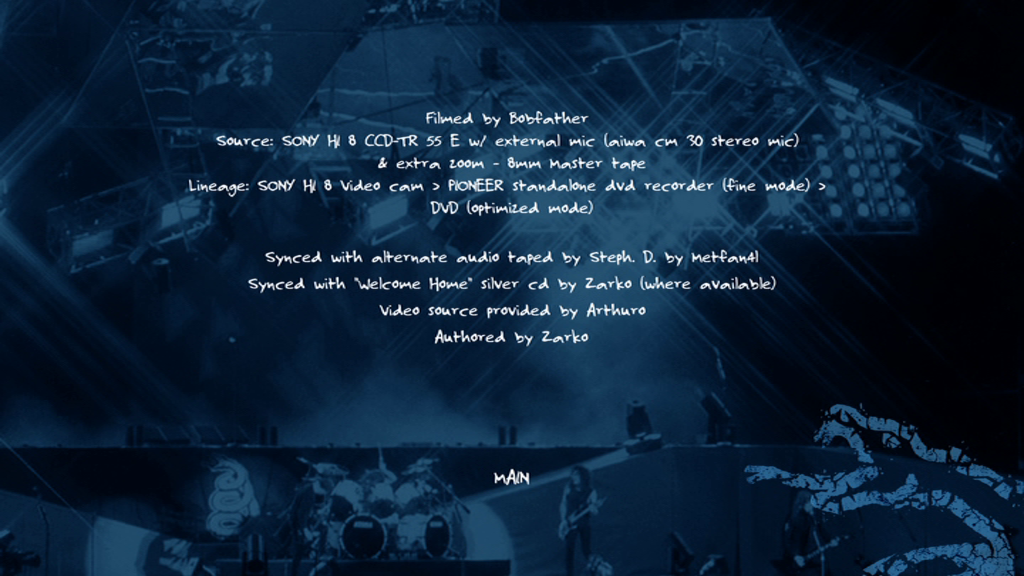 Alternate audio taped by Steph. D. and synced by Metfan4l "Welcome Home" silver cd audio synced by Zarko [except *] Video provided by Arthuro