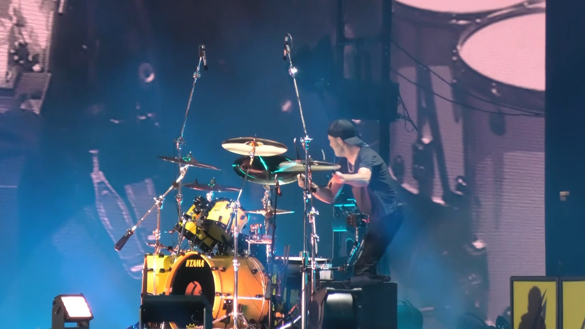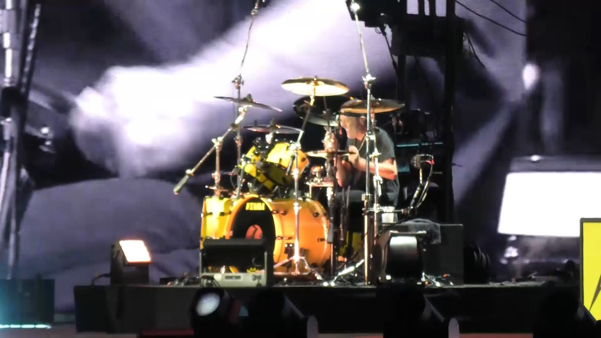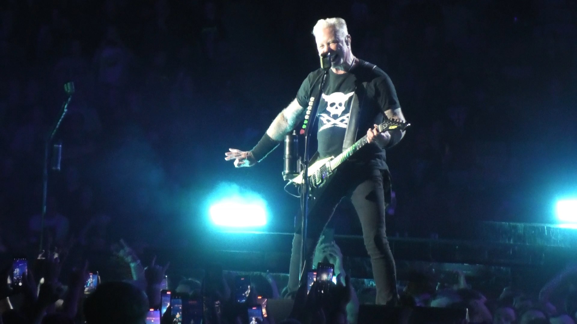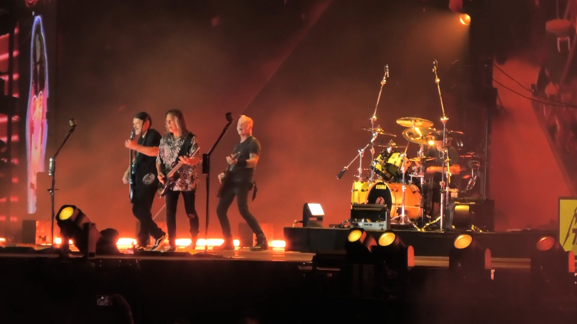 Ending with the band and crowd singing Happy Birthday to Kirk and him being sprayed.