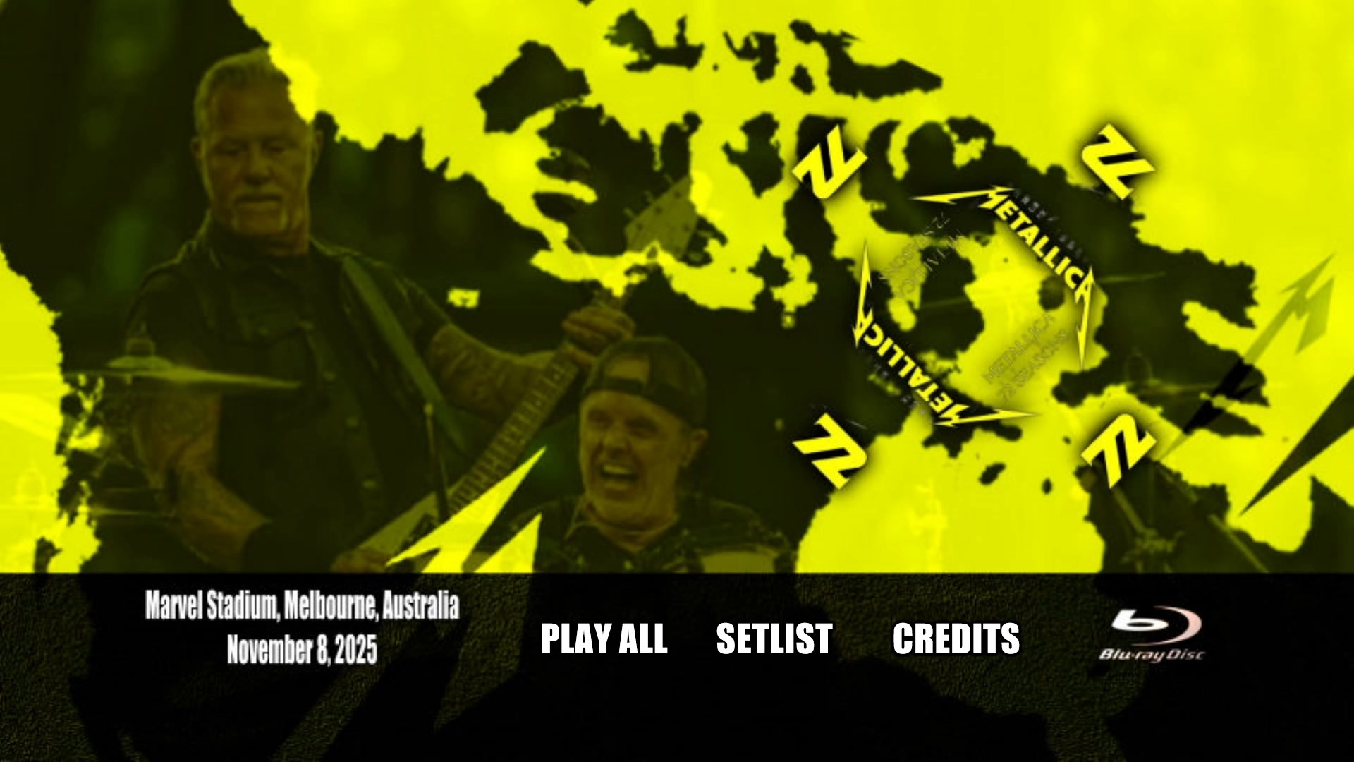 It's A Long Way to the Top The Ecstasy of Gold Creeping Death For Whom the Bell Tolls Fuel The Memory Remains The Unforgiven Wherever I May Roam Break The Day That Never Comes Moth Into Flame Sad But True Nothing Else Matters Seek & Destroy Lux Æterna Master of Puppets One Enter Sandman